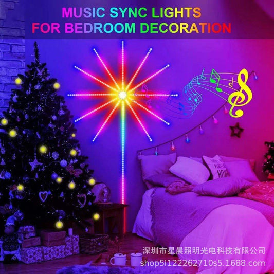 Fireworks Lights Led Strip Music Sound Sync Color Decoration Battery Lights With Remote Control 5v Diy Firework String Lights