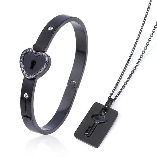 Lock Bracelet and Key Necklace Set