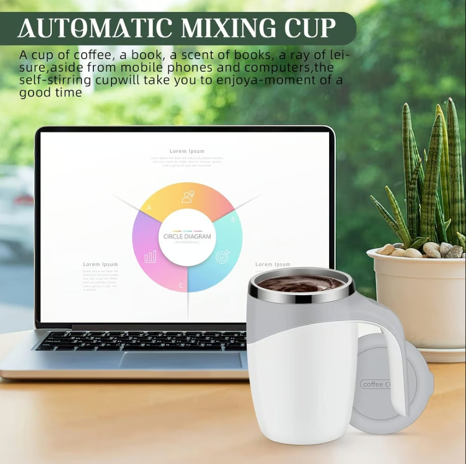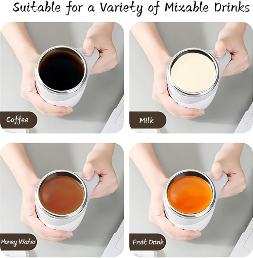 ☕Efficient Coffee Mixer - Our self-stirring coffee mug ensures no undissolved powder at the bottom. Ideal for coffee, milk tea, hot chocolate, and more. Convenient and hassle-free mixing for a smooth drink every time.