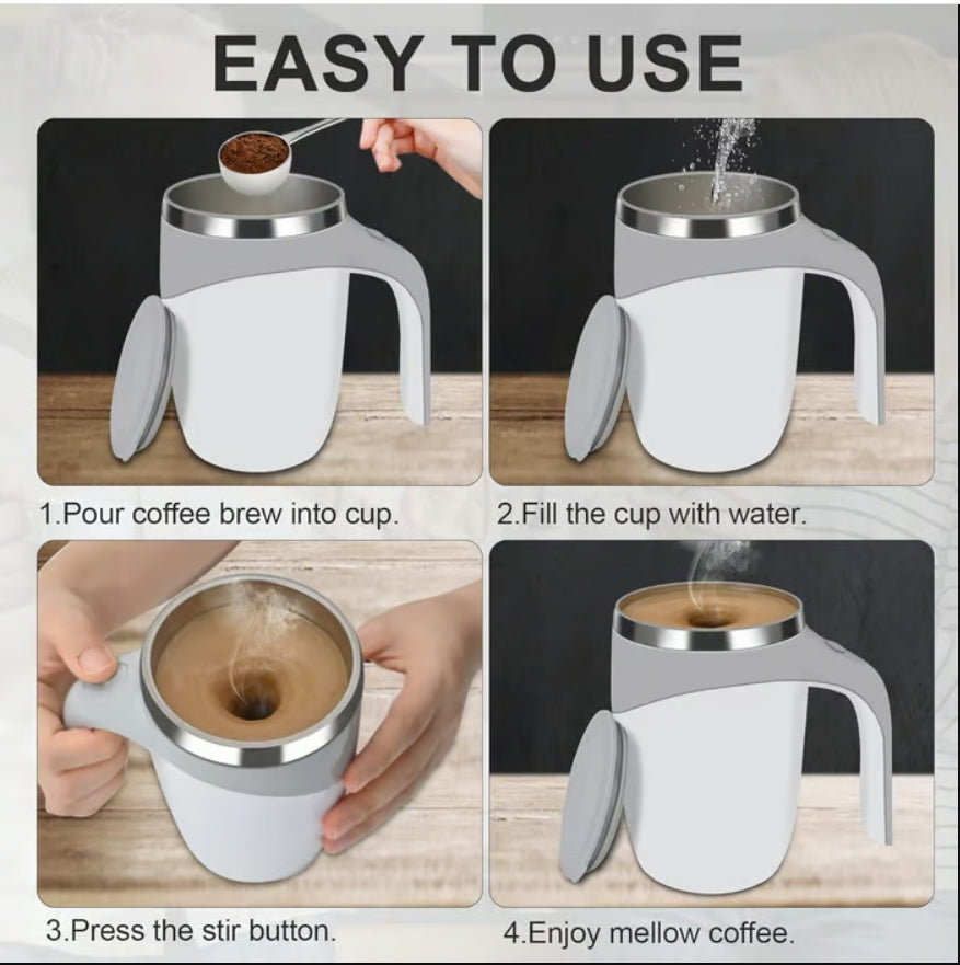 ☕Automatic Magnetic Stirring Coffee Mug - Add your favorite powder, press the button, and the automatic magnetic whisk blends everything evenly. Ideal for home, office, gym, or school. Designed for liquid and powder drinks only, not suitable for very viscous liquids or large particles.