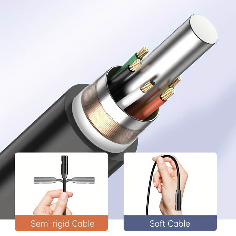 The 5m/16.5ft semi-rigid cable adopts pure copper superconducting wire core+thickened iron wire, can be bent flexibly at will, more convenient and stable to ensure the angle you want and gain more accurate detection.