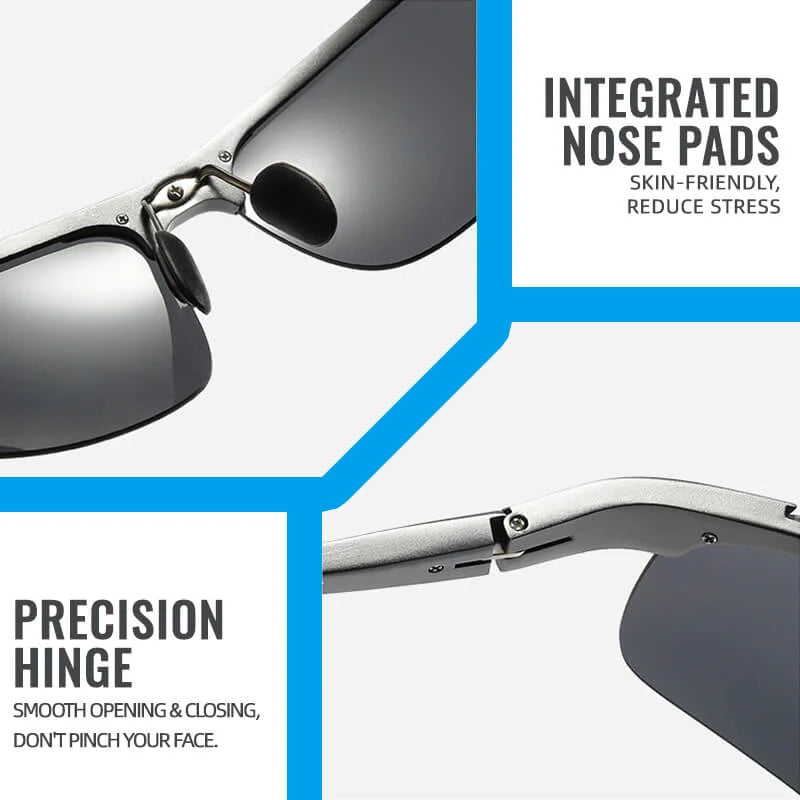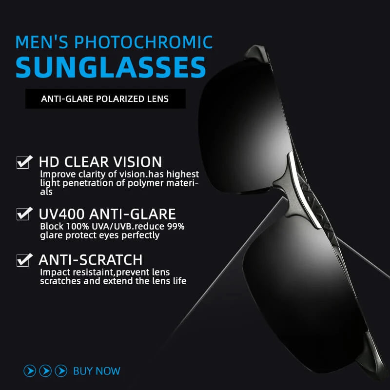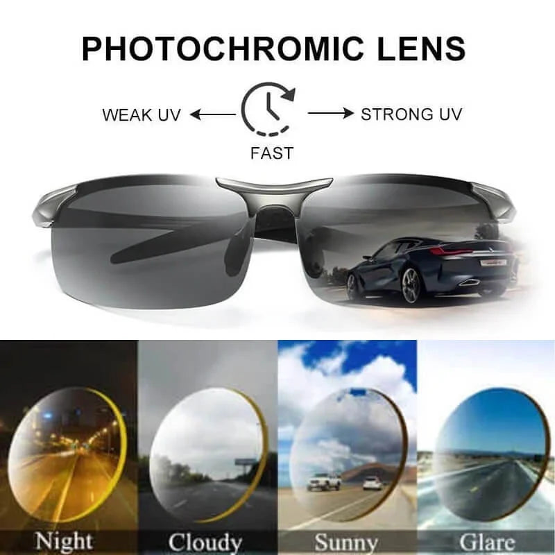 NO MATTER DAY OR NIGHT, IT WORKS WELL-Our sunglasses are made of special photochromic polarized lenses. When driving at night or into a dark environment, the lenses are lightcolored transparent to enhancing the visibility while effectively reducing the glare. During the daytime, it can effectively filter the strong light, enhance the visual sharpness, reduce eyes fatigue, and keep the eyes always in the most comfortable state of outdoor activities.