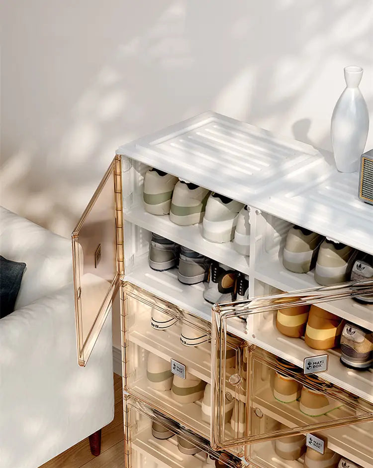 With magnets to keep the door closed, the clear box protect your shoes from biting by your pets
