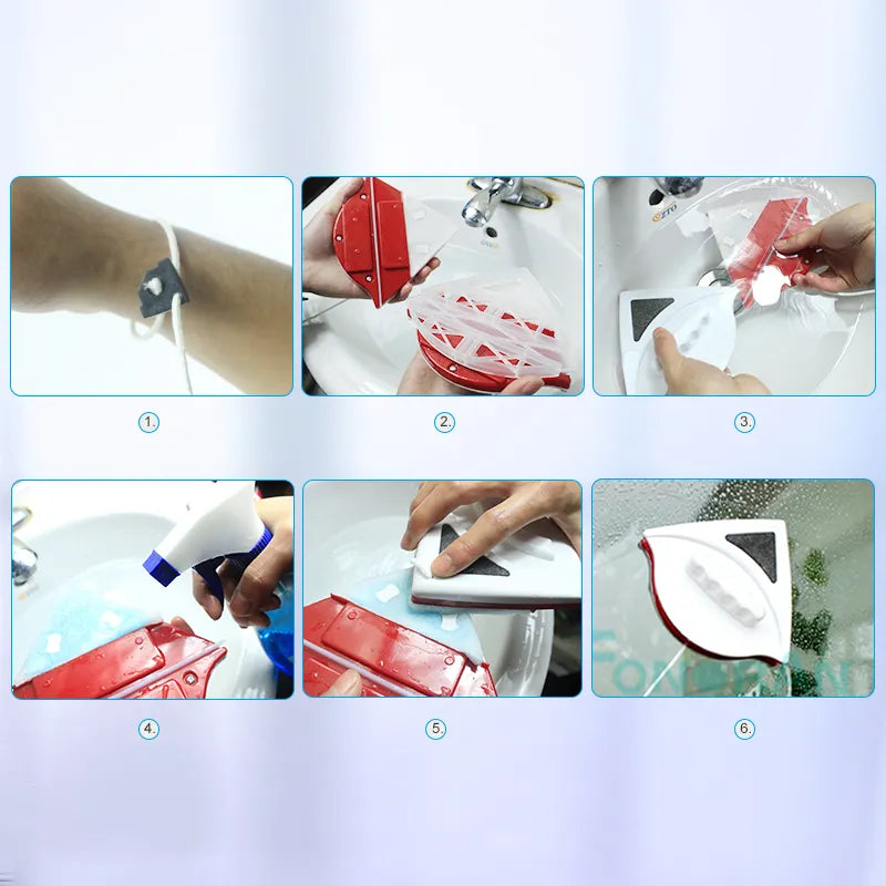 Easily Wipe the Glass:with powerful internal magnets locking the two cleaning sides together.When you move one side, the other one follows. Double side magnetic glass cleaner wiper,easy to clean and use.
