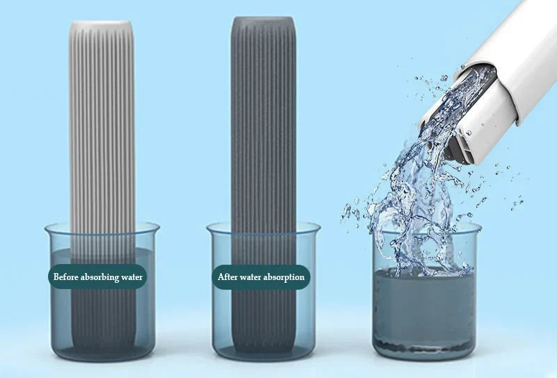 The mini mop has a push-pull mechanism that allows you to wring it out with ease, leaving no mess behind. It's like magic, but for cleaning!