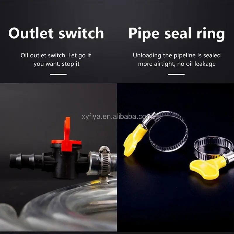 Rubber hand pump that starts siphoning liquid flow quickly. 2 flexible Durable PVC transparent hoses provide easy reach into containers, petrol resistant, avoid corrosion.