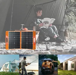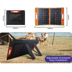This 60W foldable solar panel is perfect for outdoor activities for its compact design and it is compatible with a variety of different energy storage power charging. With its stable kick stand, you can place it to a better angle towards the sun to increase the solar irradiation time. It is waterproof, rainproof and more durable. High-performance monocrystalline silicon solar cells have a higher photoelectric conversion rate, reduced tube loss and higher output than ordinary solar panels.
