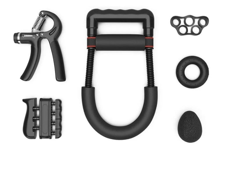 - 1 Set * Wrist Strength Set(Including wrist strength device, R-type grip strength device, piano grip strength device, five-finger trainer, grip ring, egg grip strength ball)