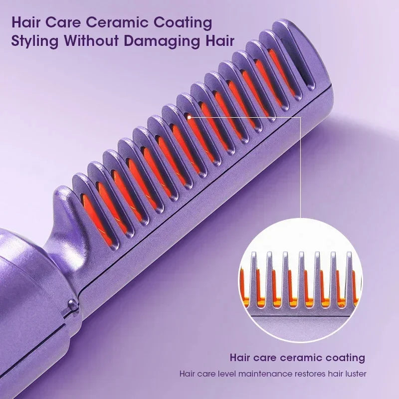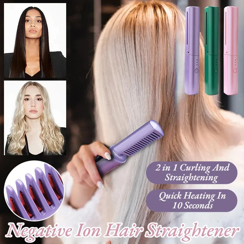 【Unique Comb,Easy to use】Different from traditional hair straighteners, it has a built-in hair comb with teeth, and it can be used after charging, easy to carry