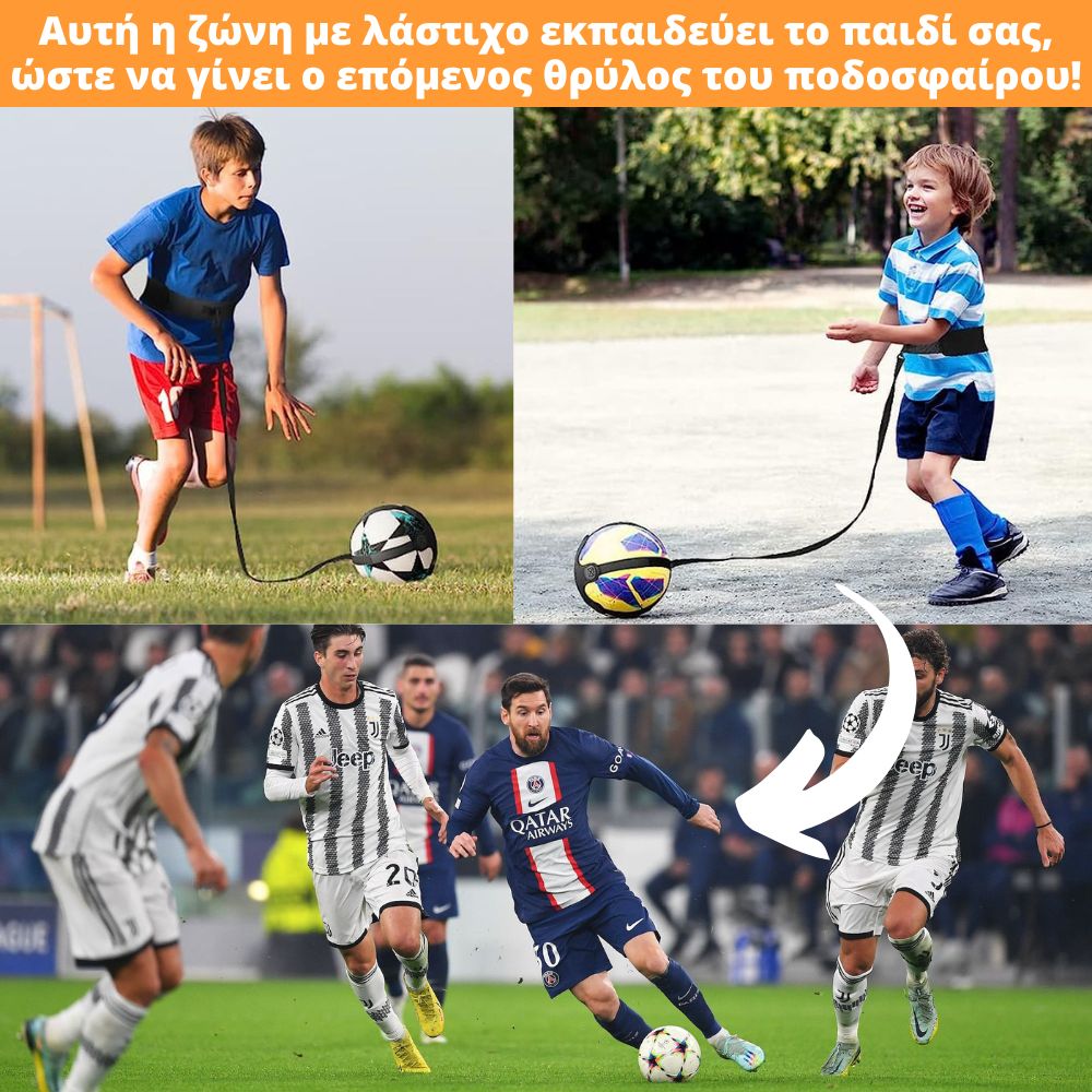 The belt is adjustable for waist size and has an elastic that makes the ball bounce back. They practice hitting, passing, receiving, dribbling, ball control and other tricks with the ball .