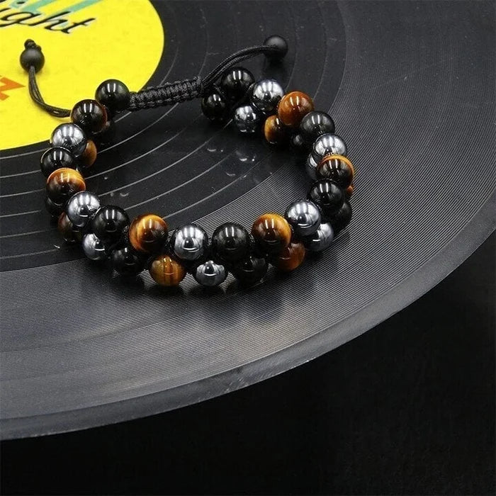 IMPRESSIVE HANDCRAFT - The Triple Protection Bracelet associate in one piece the most protective stones, tigers eye and Agate and Black gallstone, and wave braided these triple healing stone beads together, the combination of all theses powerful crystal stones makes their power more stronger. Never worry like elastic one will be break out