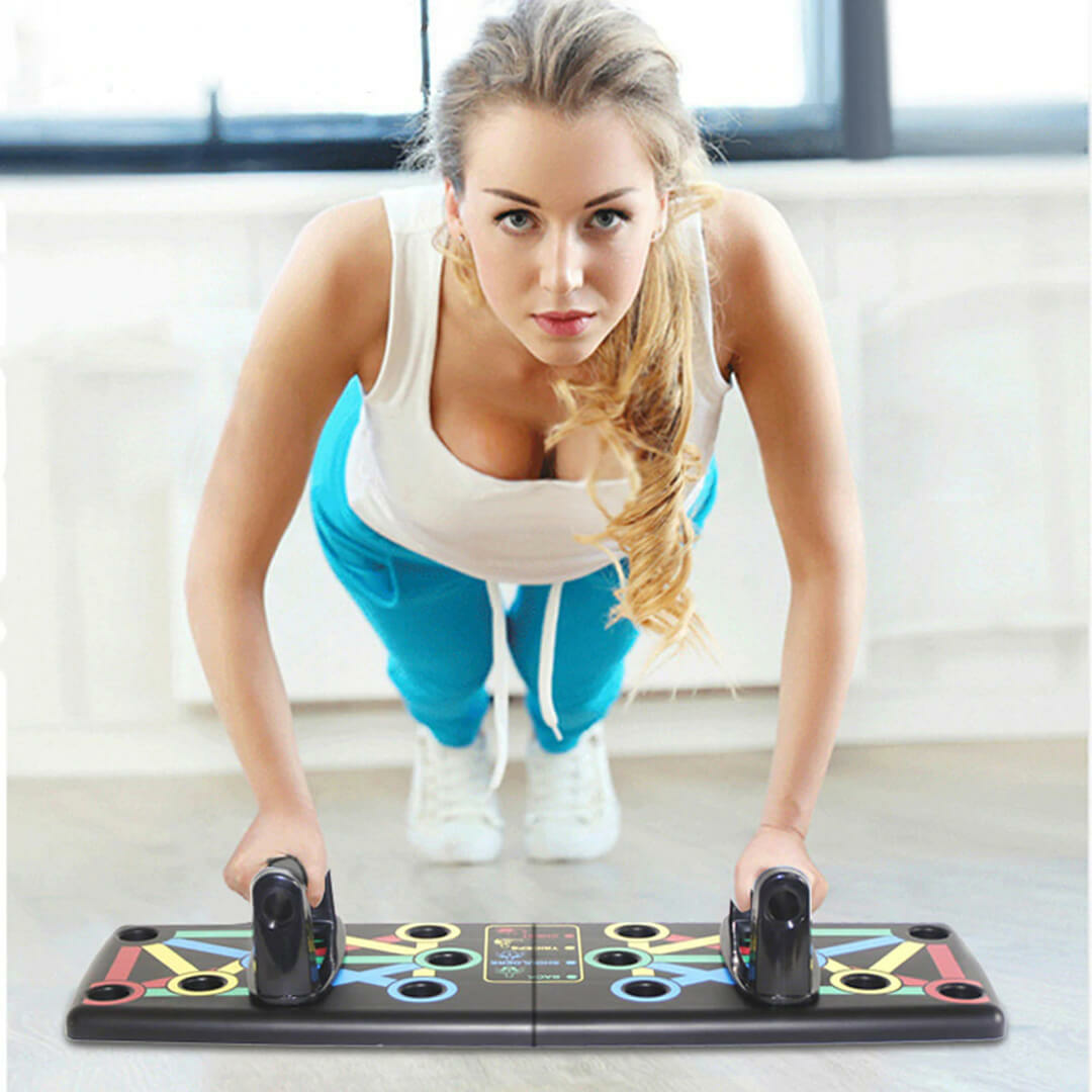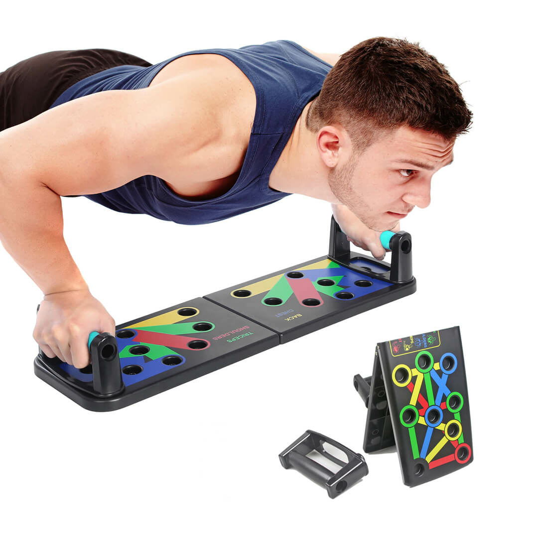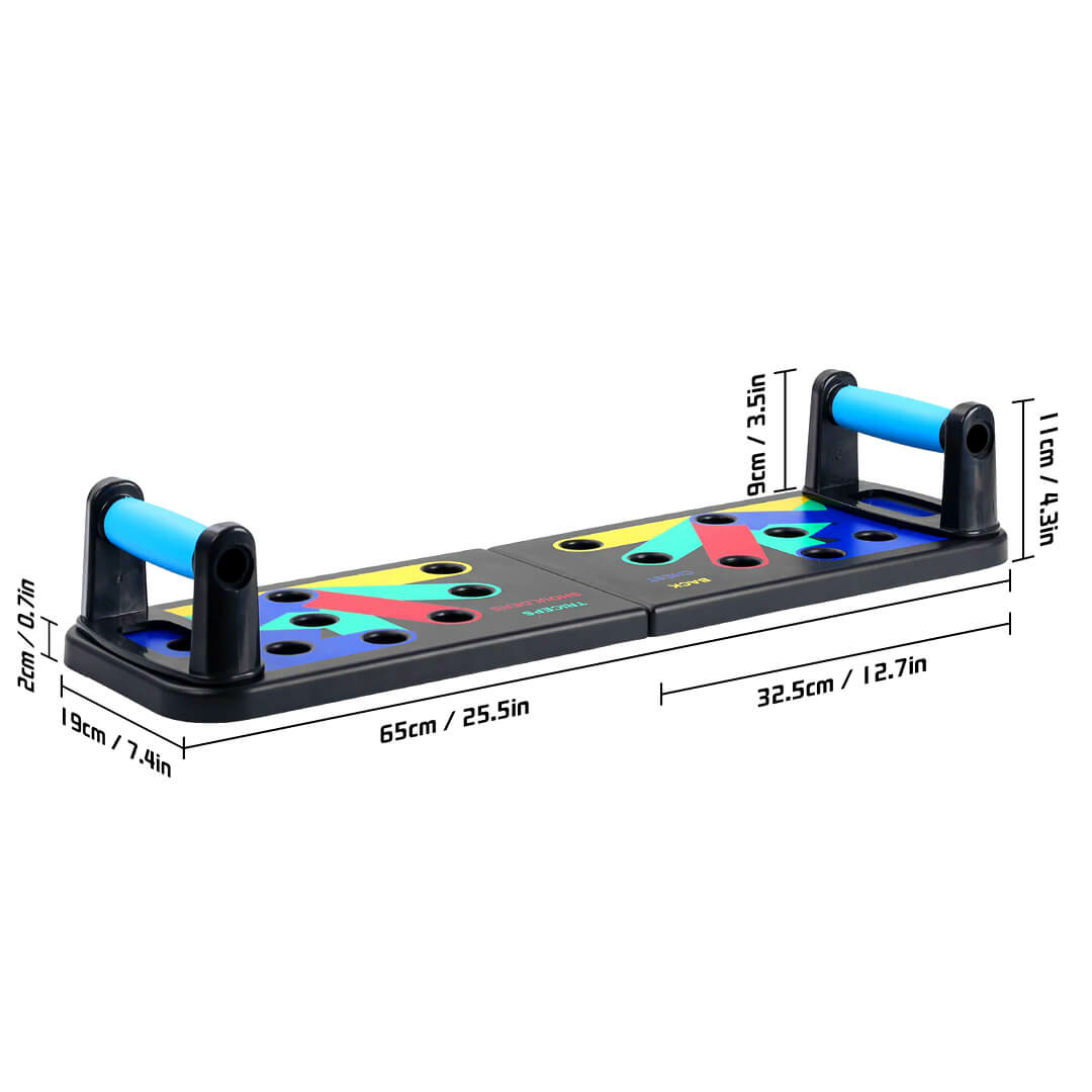 Incorrectly positioning your hands when performing push-ups may reduce the effectiveness of training. Thanks to the color system, you can be sure that you are exercising properly. Additionally, special rubber grips ensure proper wrist positioning and are more comfortable for the hand.