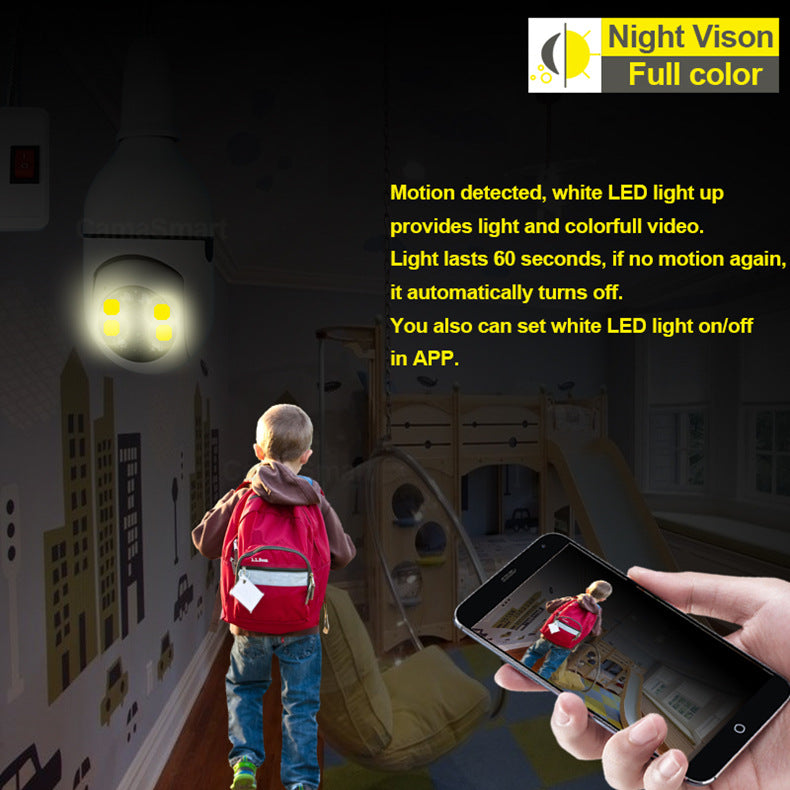 Upgrade your home security with the Wireless Light Bulb Camera and gain full control over your surroundings. Whether you're at work, on vacation, or simply want to keep an eye on things, our camera offers convenience, peace of mind, and high-quality surveillance all in one."